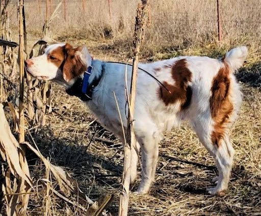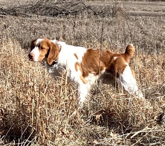 Puppies Dam: Rose, whose parents are Rascal and my Lil dog (details below), shows every quality you’d expect in an excellent bird dog. She has strong desire, boldness, independence, great bird-finding ability, stylish pointing, and was easy to train. Rose is gentle both in her kennel and at home, making her a delightful companion. She’s trained and hunted alongside other dogs and handlers and earned her AKC Junior Hunter title at just 9 months old with Amy West as her handler. She’s a larger Brittany female and produces great pups. She comes from a long line of proven field trial competitors and hunters, 23 of the 30 dogs in her pedigree are DC, NFC, GCH, FC, AFC, champions.