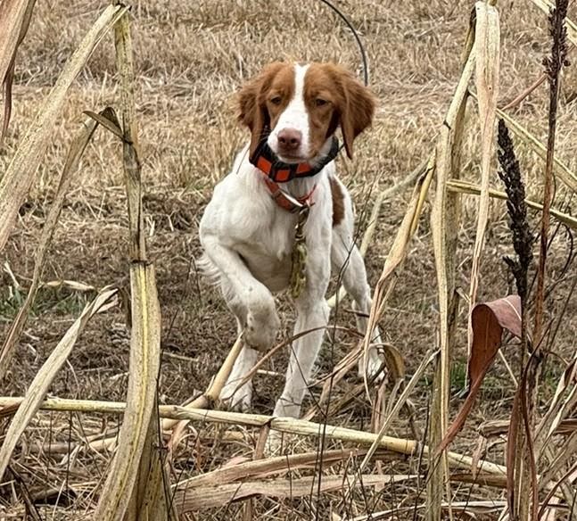 Stella’s Sire: WK’s Big Chill “Rudy” is an exceptional young dog, known for his unique combination of a relaxed demeanor and a strong hunting drive. In the kennel, Rudy remains calm and composed, while in the field, he transforms into a dynamic bird-finding machine with a swift, wide-ranging cast. Rudy has experience hunting with various other dogs and has successfully pursued wild birds across North Dakota and Kansas. Selected by Mark for his remarkable game drive, ease of training, and friendly temperament, Rudy is OFA Good. (See his pedigree in pics